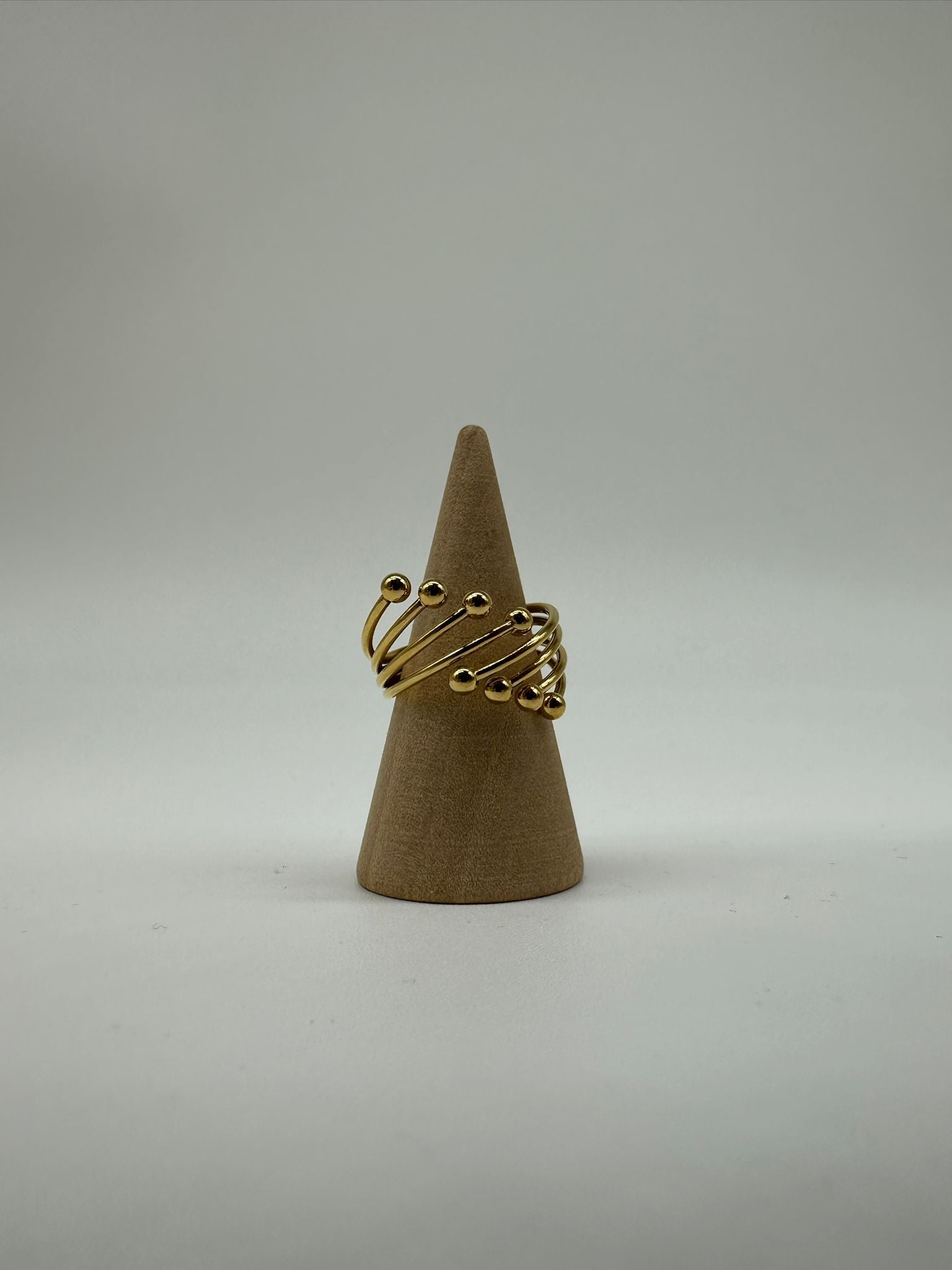 Anello Avvolgente Sfere Acciaio Inossidabile Oro - Design Spirale Moderno