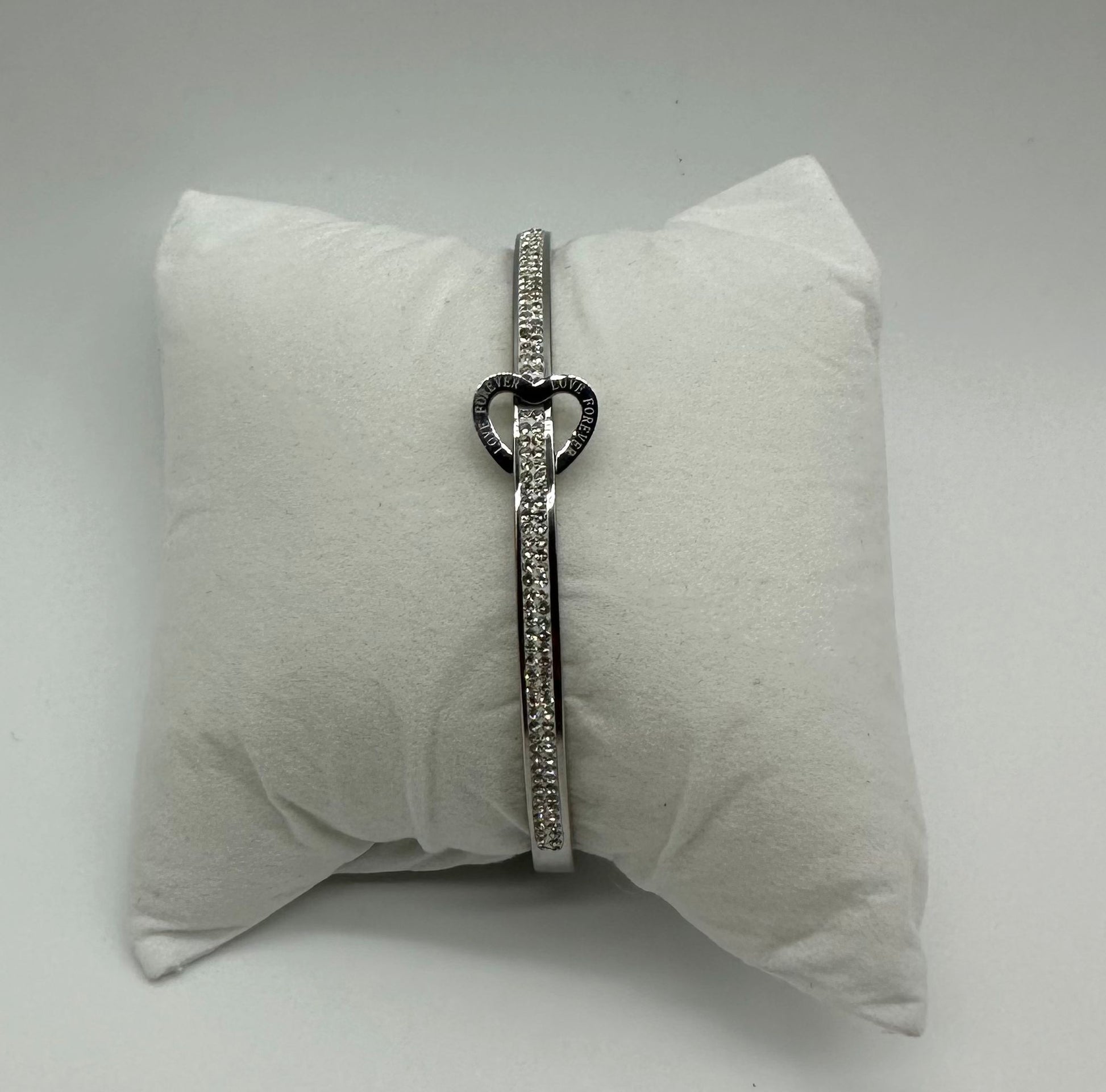 Bracciale Rigido Love Forever - Strass e Cuore Argento