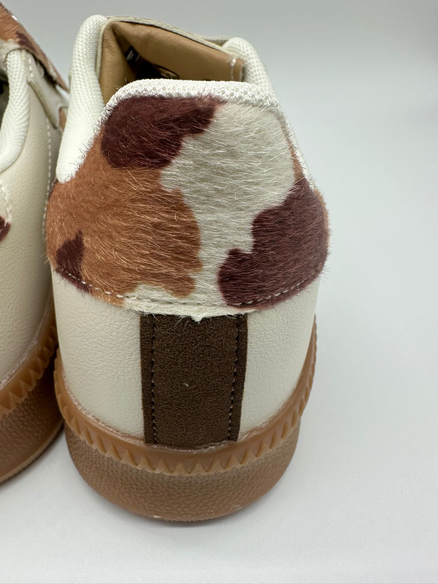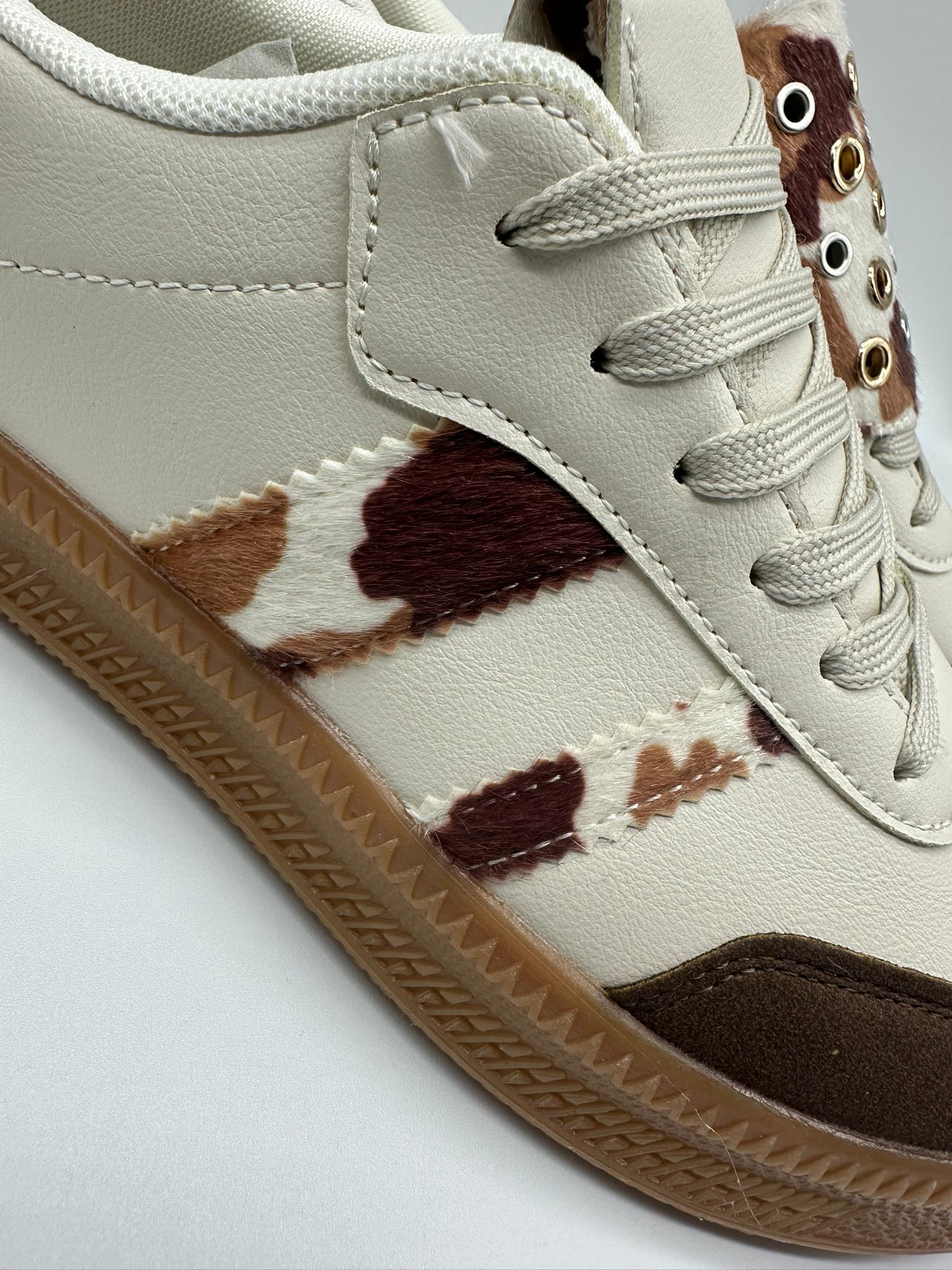 BROWN - Sneakers Sportive Donna Animalier Bianche e Marroni con Dettagli Maculati