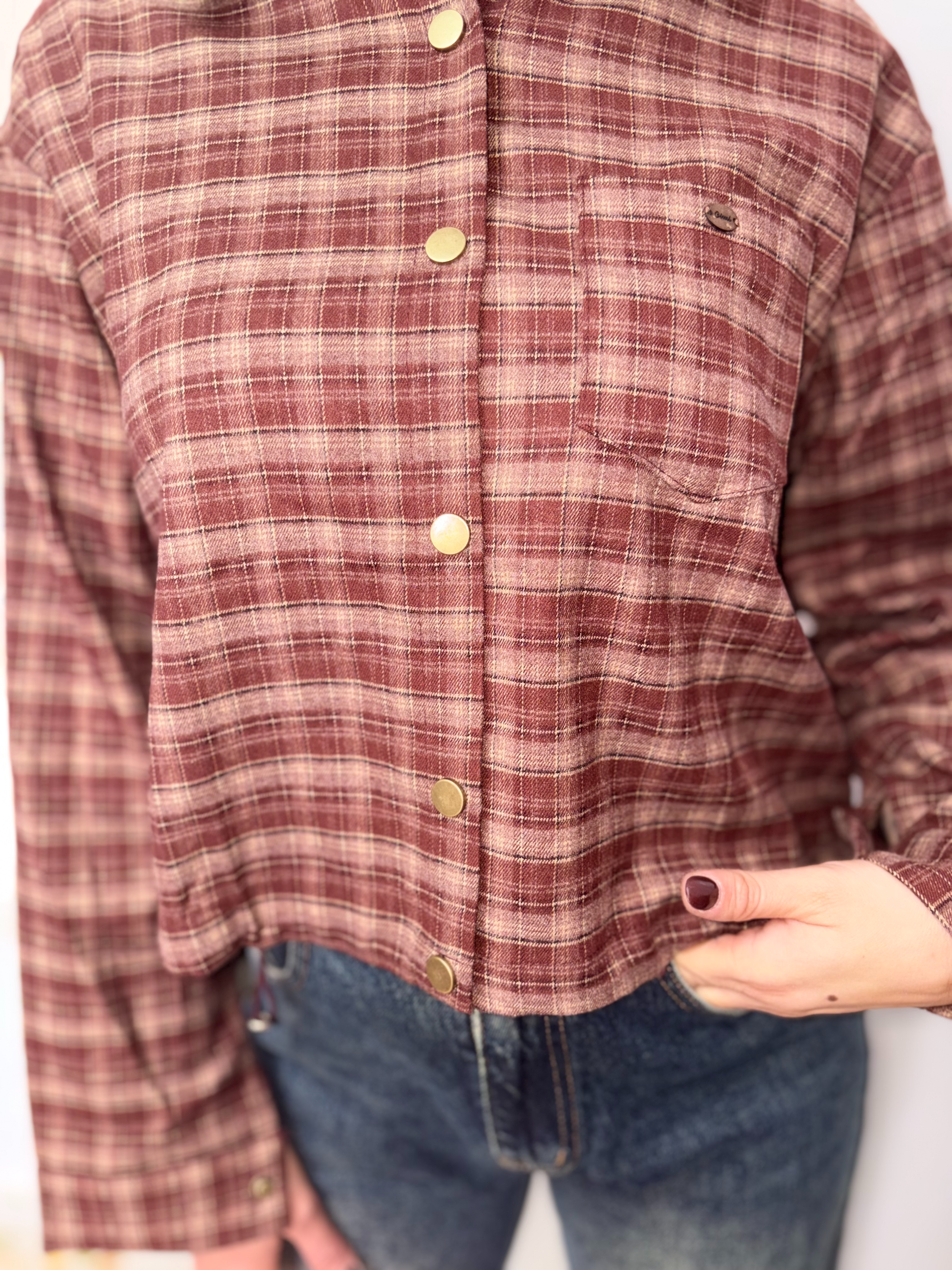 Aggiungi un tocco grunge al tuo look con questa camicia corta a quadri. Perfetta da indossare aperta sopra un crop top o chiusa per un look più classico.