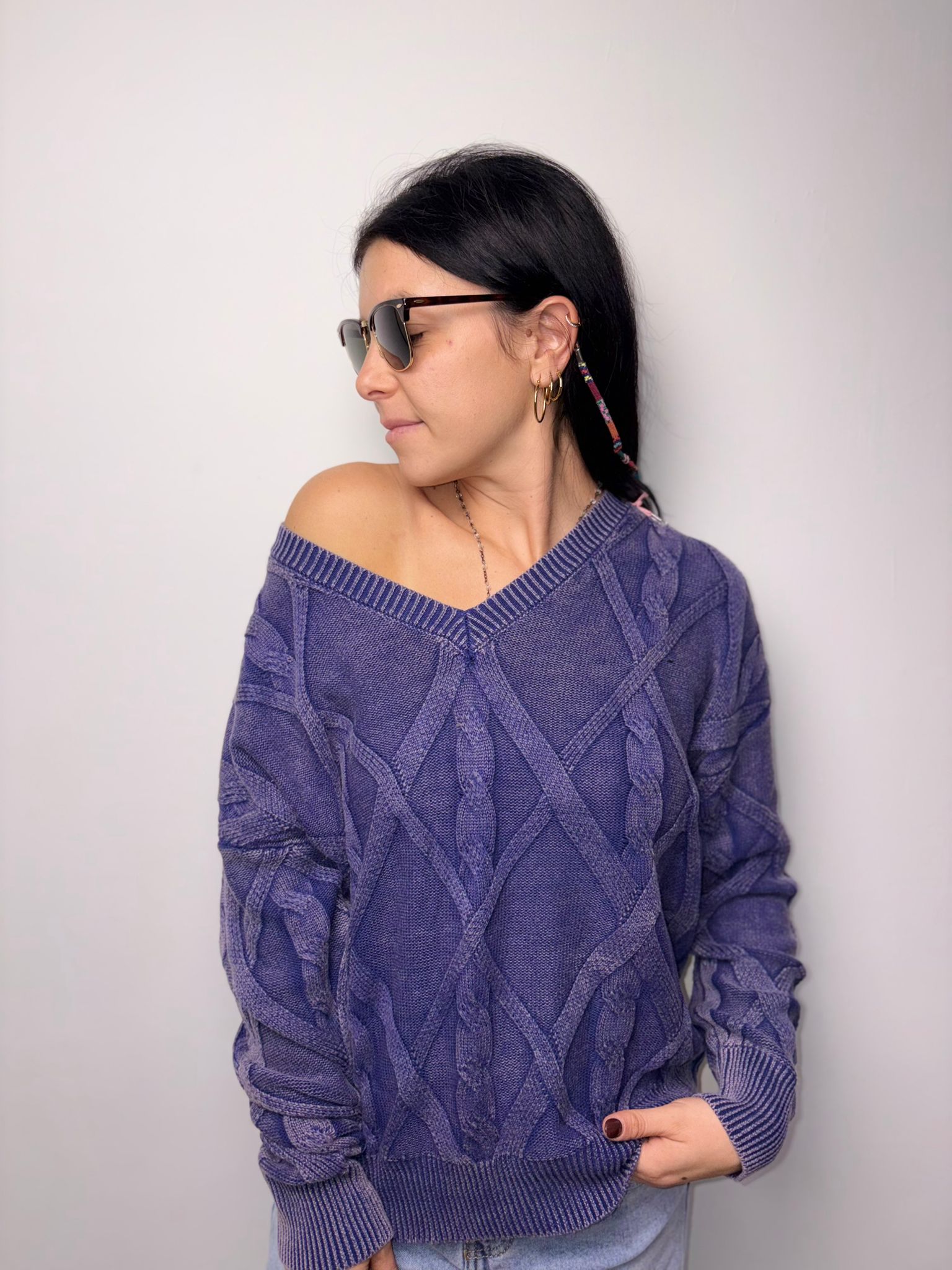 "Maglione Donna a Trecce Sfumato - Stile Vintage Distressed"