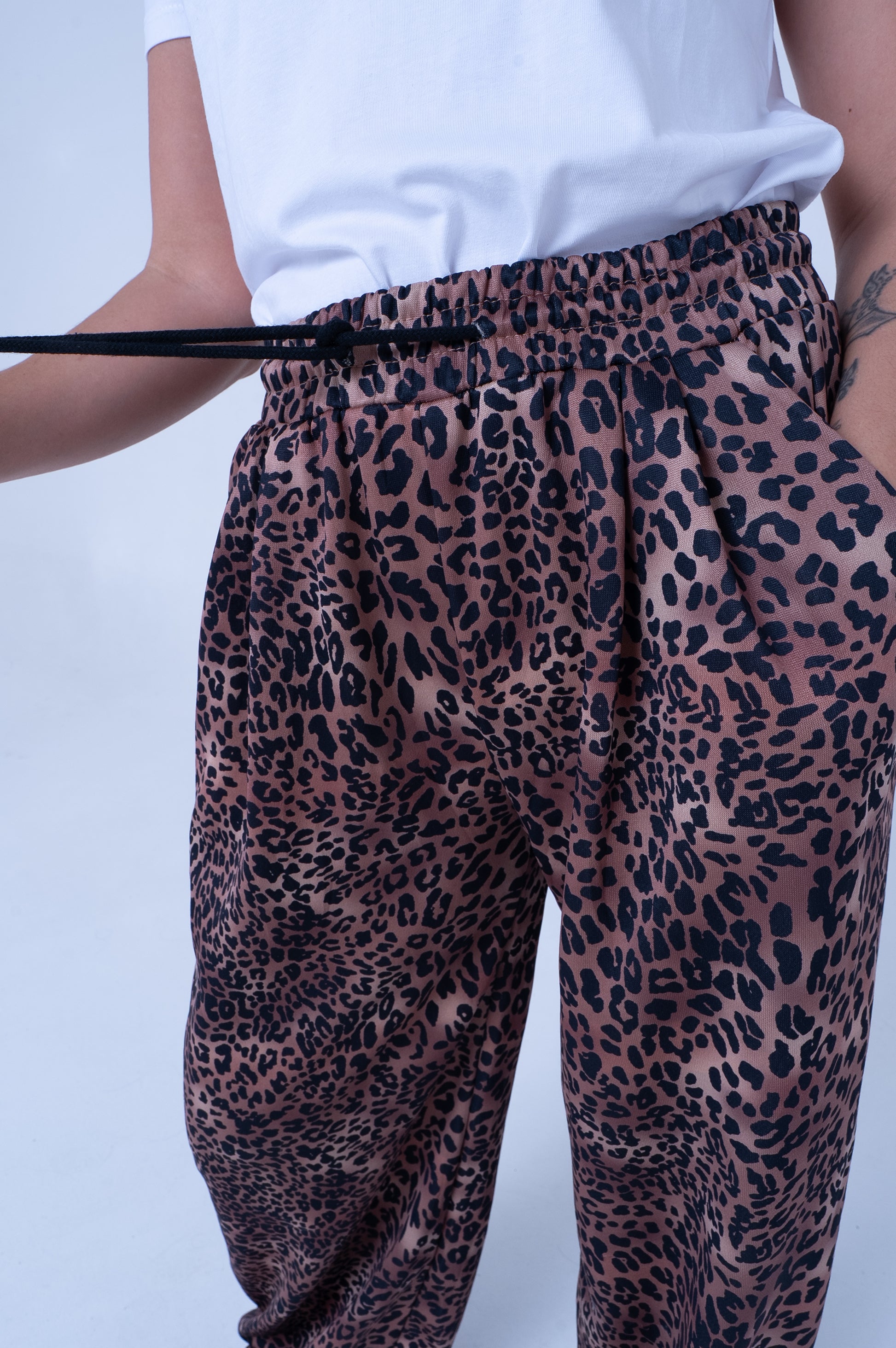 Pantaloni comodi e alla moda con stampa animalier. Perfetti per un look casual e trendy, con vestibilità ampia e confortevole.