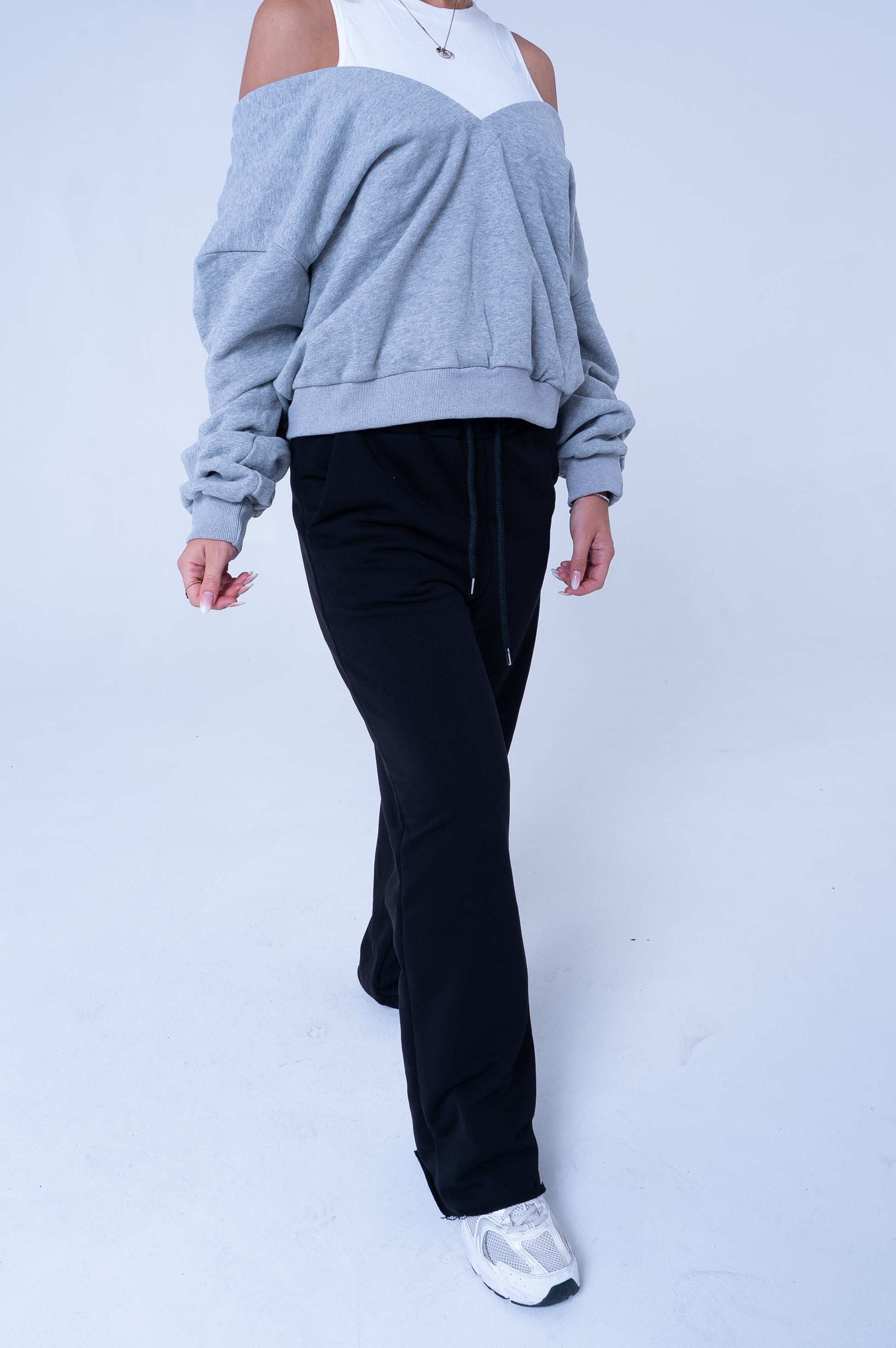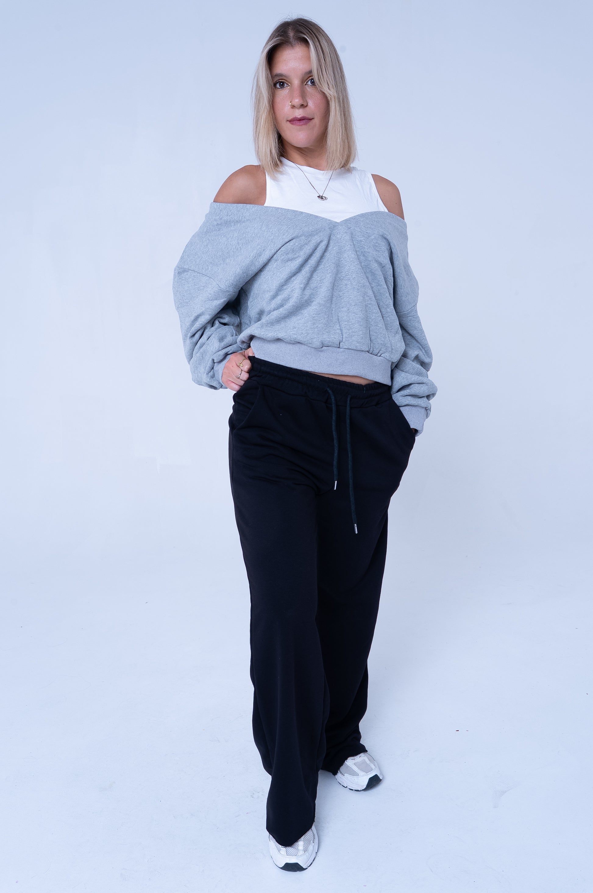 Pantatuta nero dal taglio comodo e sportivo con cordoncino regolabile in vita. Perfetto per allenamenti, tempo libero o look casual rilassati.