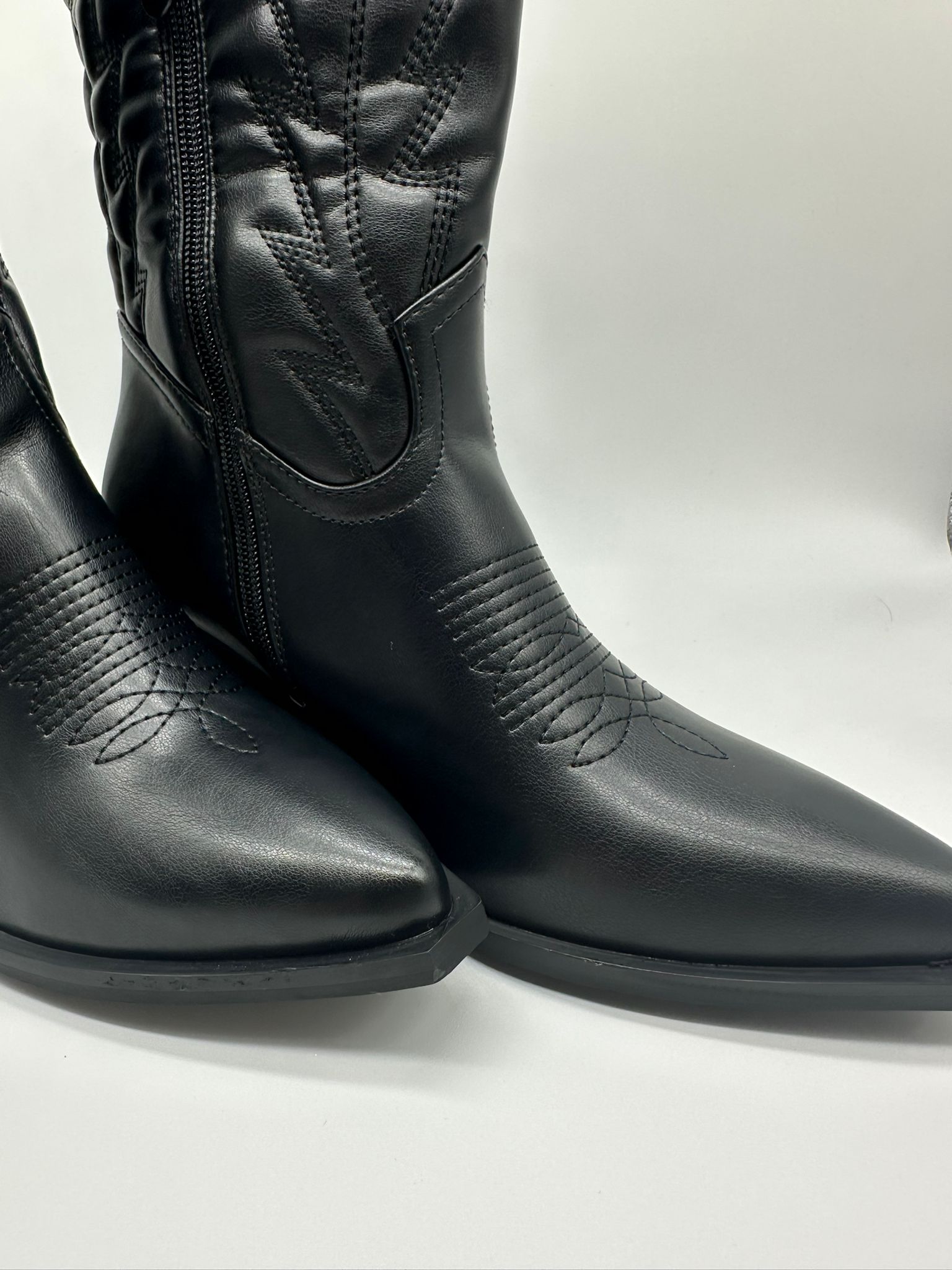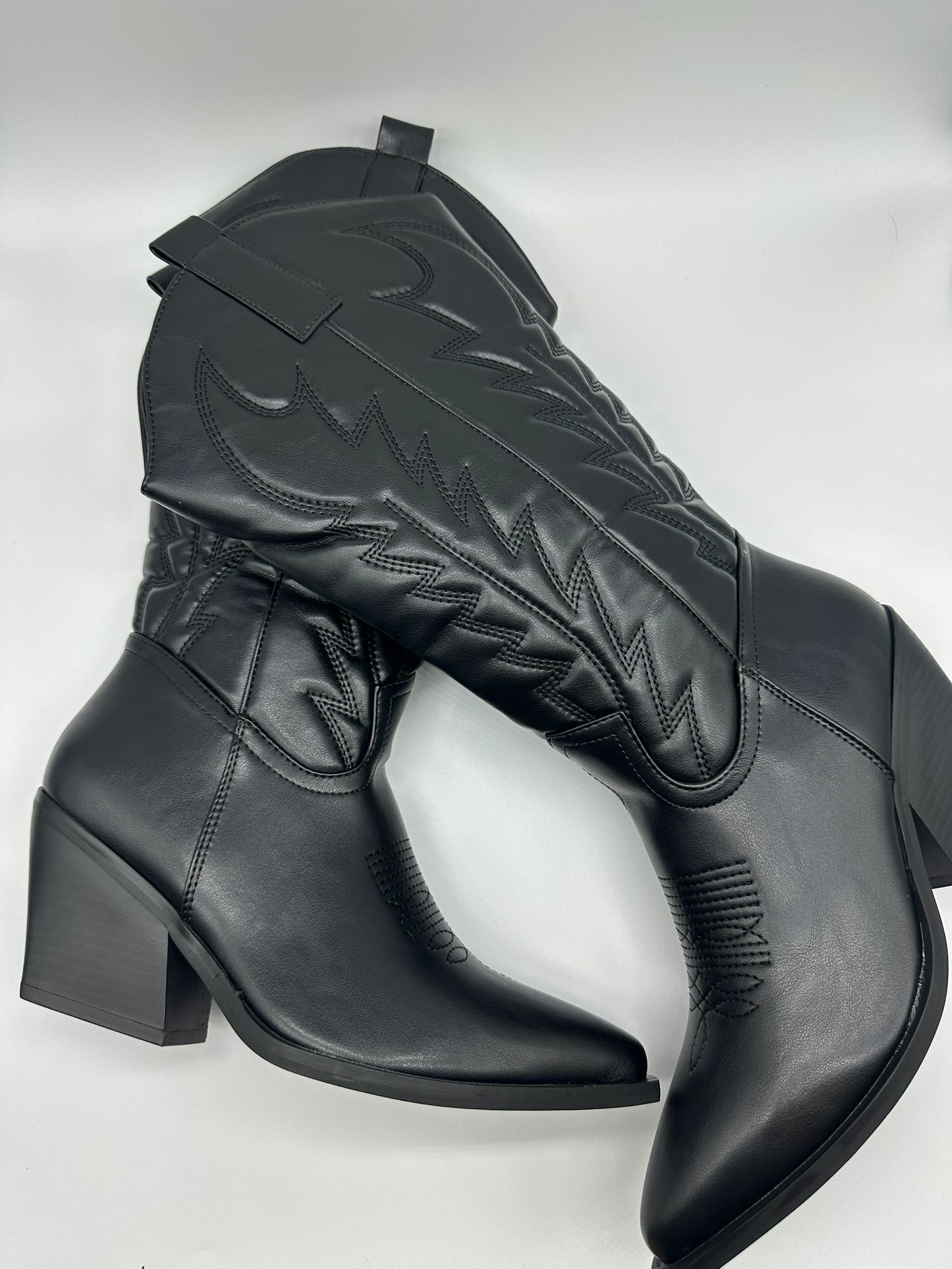 Stivali Texani Donna Neri in Ecopelle con Ricami Western e Tacco