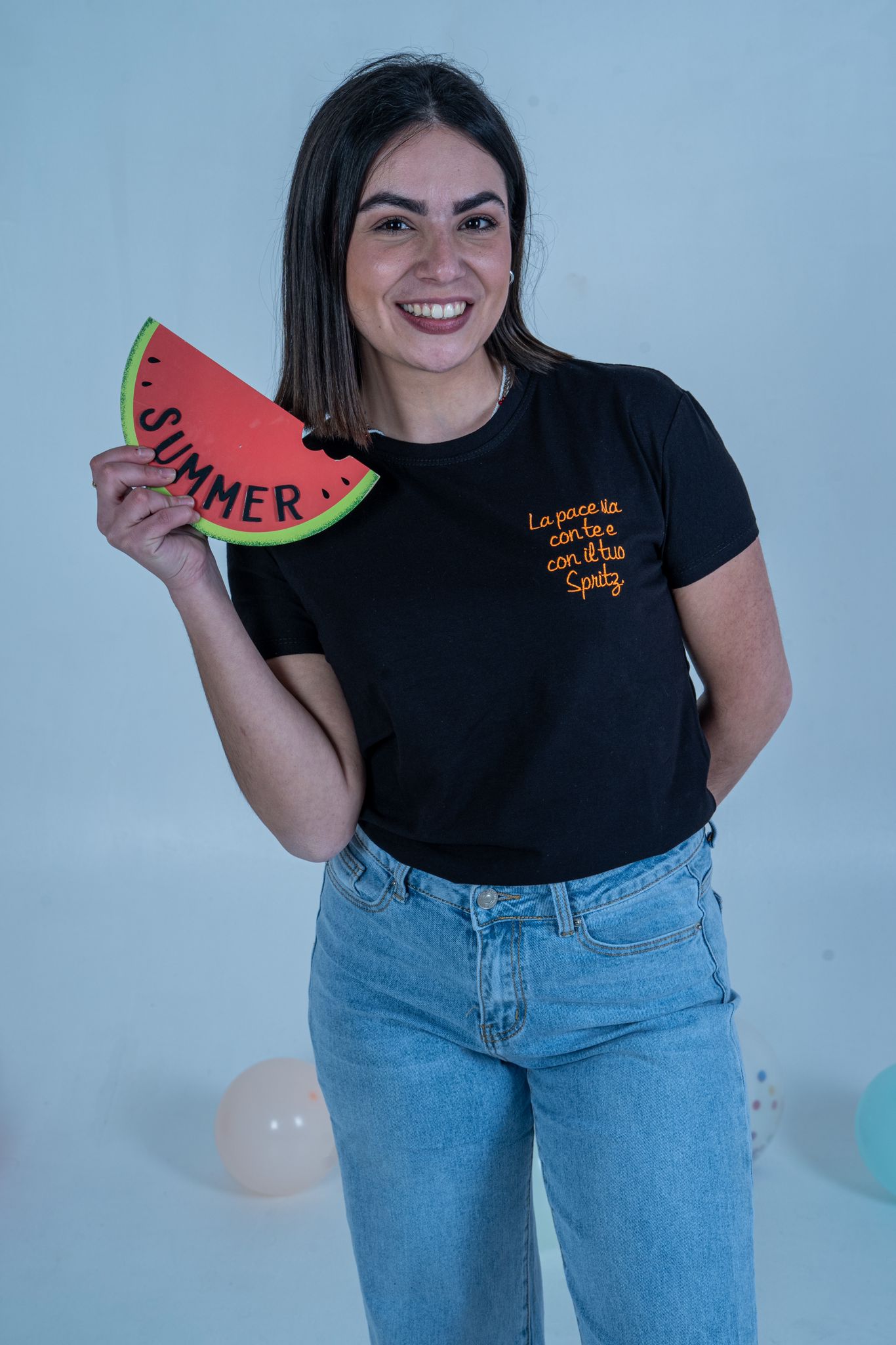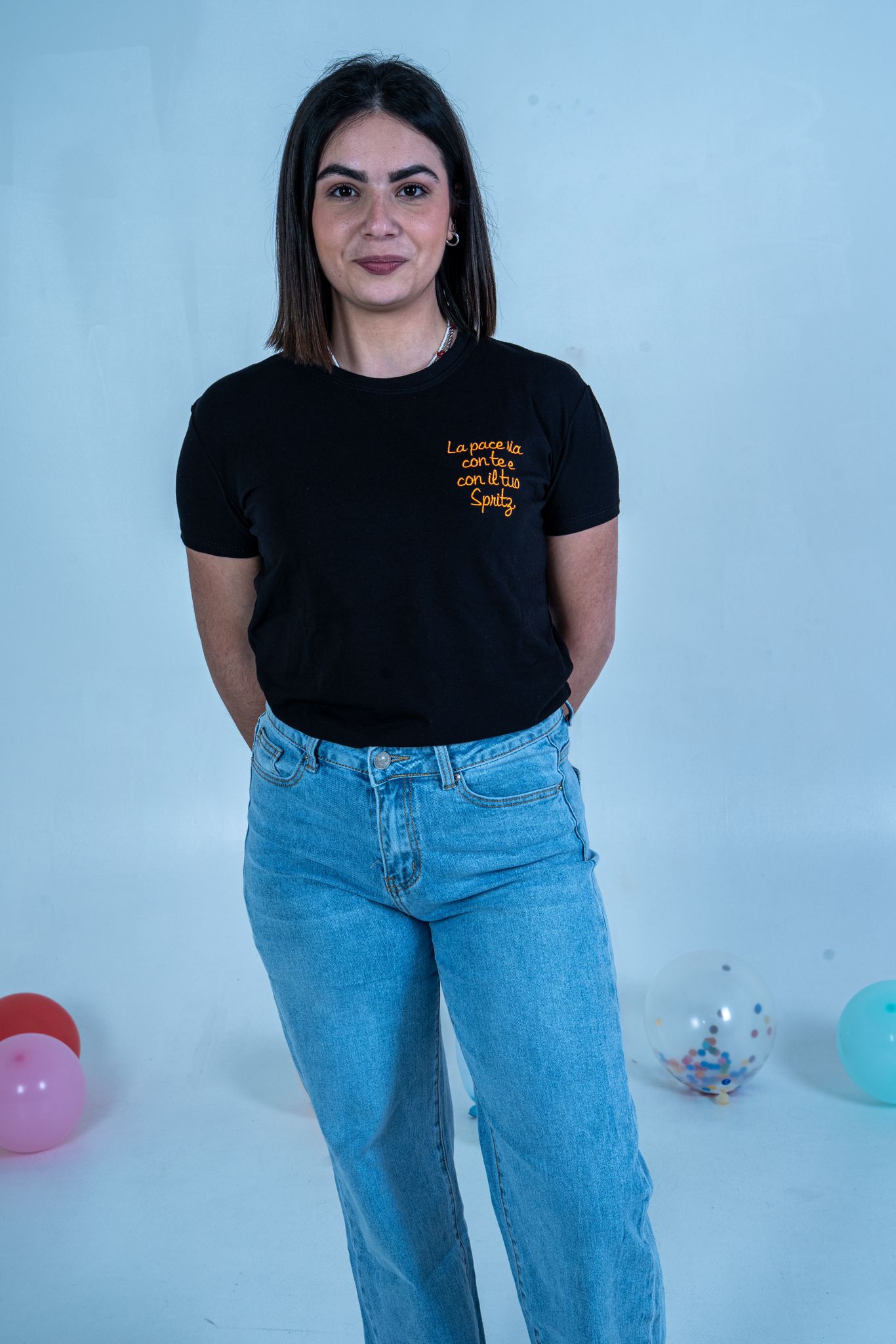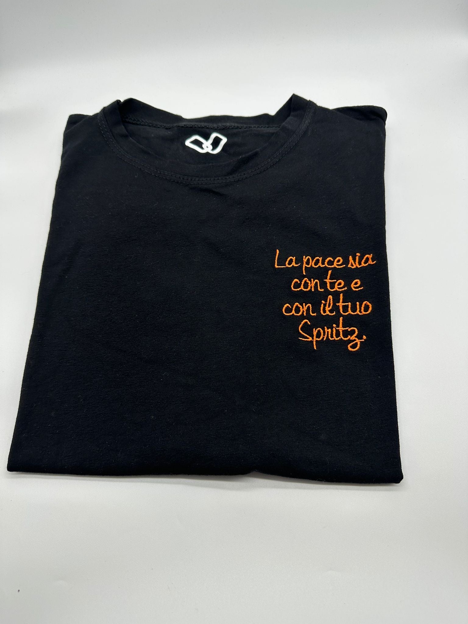 T-Shirt ricamata "La pace sia con te e con il tuo Spritz" | DR-CLYDE SHOP